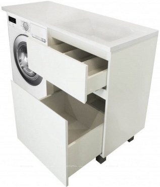Мебель выполнена из влагостойкого ЛДСП и качественного MDF с использованием эмали RENNER (Италия). Ящики снабжены системой плавного закрывания. Для мебели используется фурнитура BLUM (Австрия).