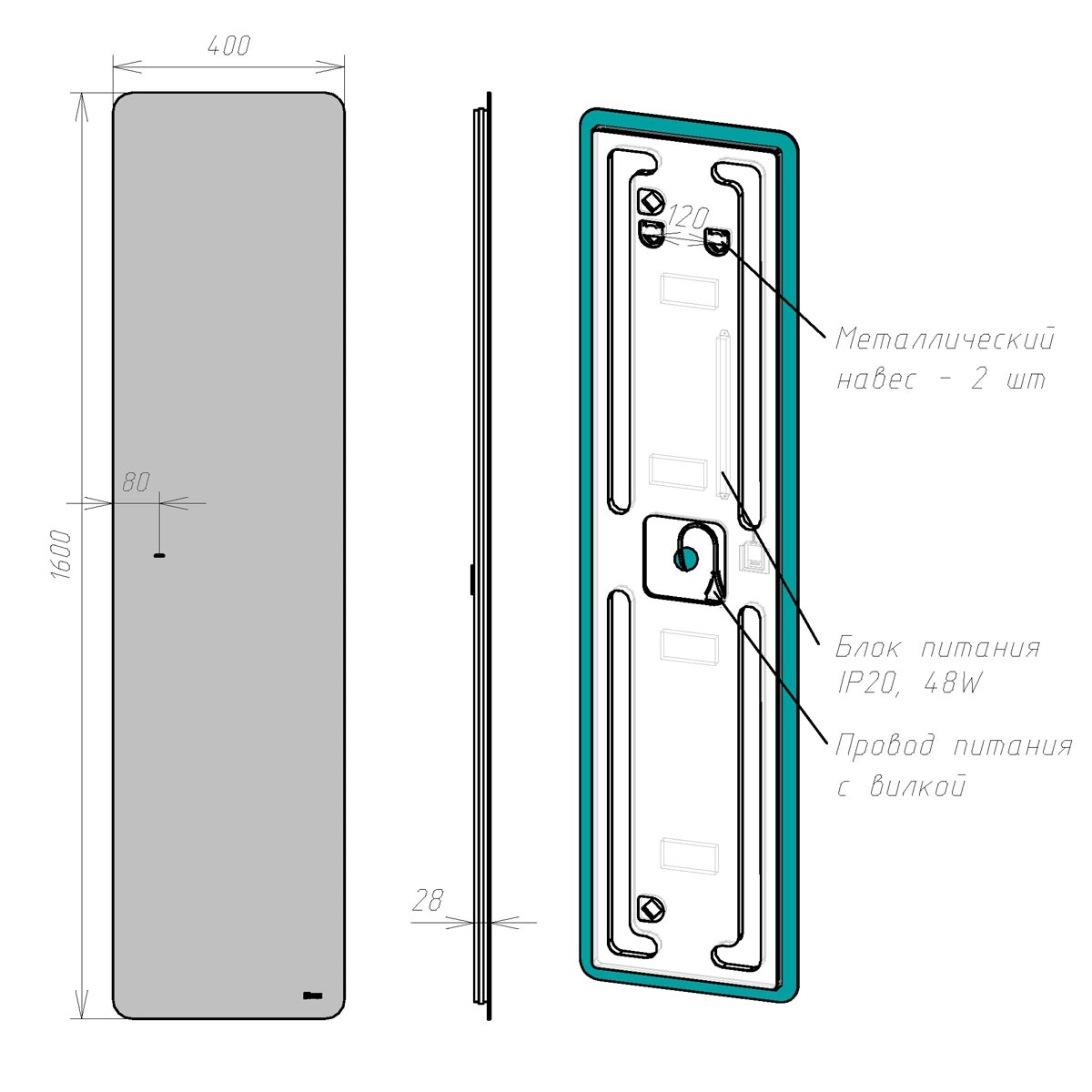 •Габариты (ШГВ): 400х30х1600 мм;