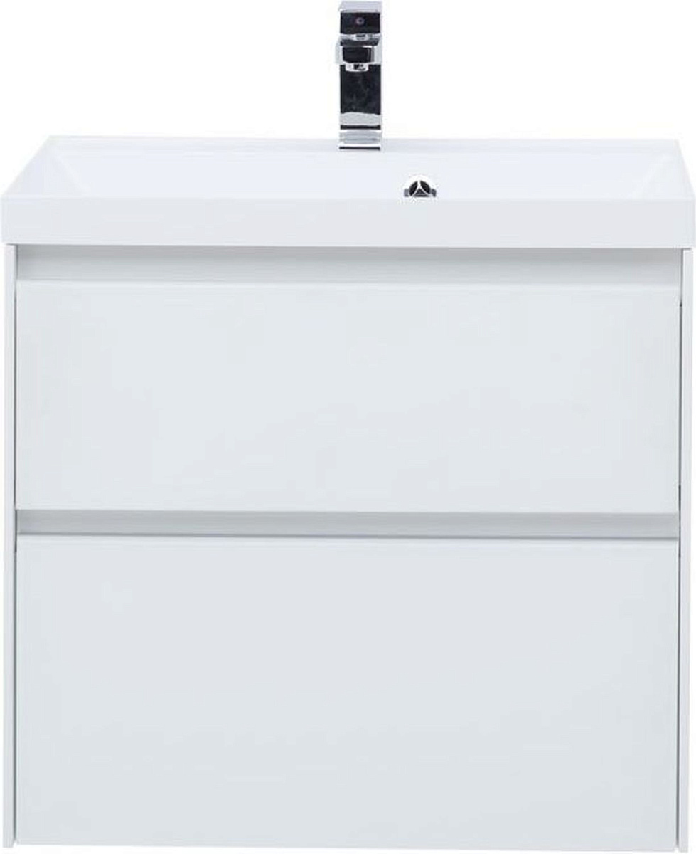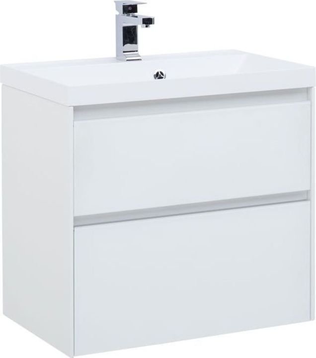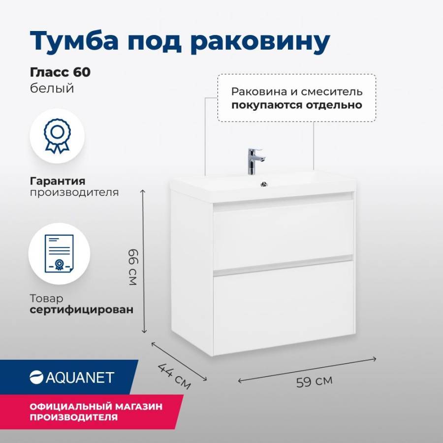 Производители позаботились о деталях. Ящики лишены выступающих деталей, ручки интегрированы в фасад. Тумбу шириной 60 см можно из подвесного элемента преобразовать в напольный, просто докупив универсальные ножки. Ящики тумб оснащены направляющими Hettich Quadro c плавным закрыванием, более известным нам как доводчик. Комплект тумбе составит раковина из литьевого мрамора «Орлеан», относящаяся к числу накладных моделей, которая внешне выглядит как единое целое с тумбой.