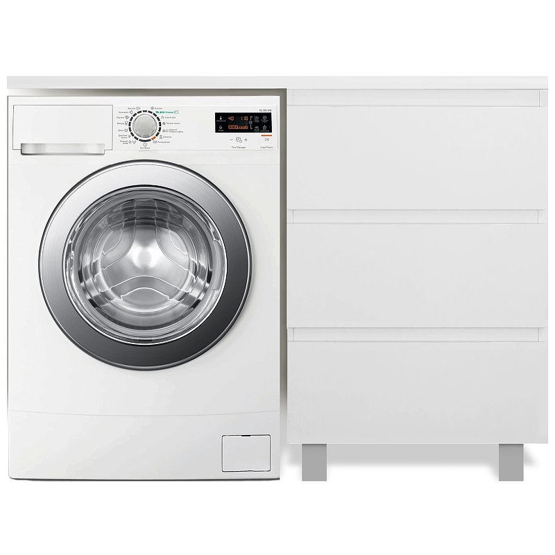 Мебель выполнена из влагостойкого ЛДСП и качественного MDF с использованием эмали RENNER (Италия). Ящики снабжены системой плавного закрывания. Для мебели используется фурнитура BLUM (Австрия).
