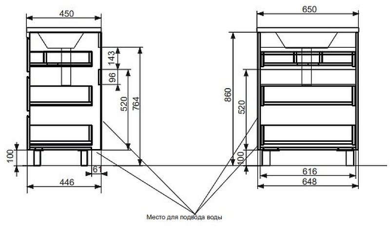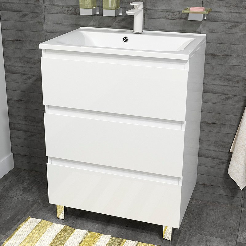 Мебель выполнена из влагостойкого ЛДСП и качественного MDF с использованием эмали RENNER (Италия). Ящики снабжены системой плавного закрывания. Для мебели используется фурнитура BLUM (Австрия).