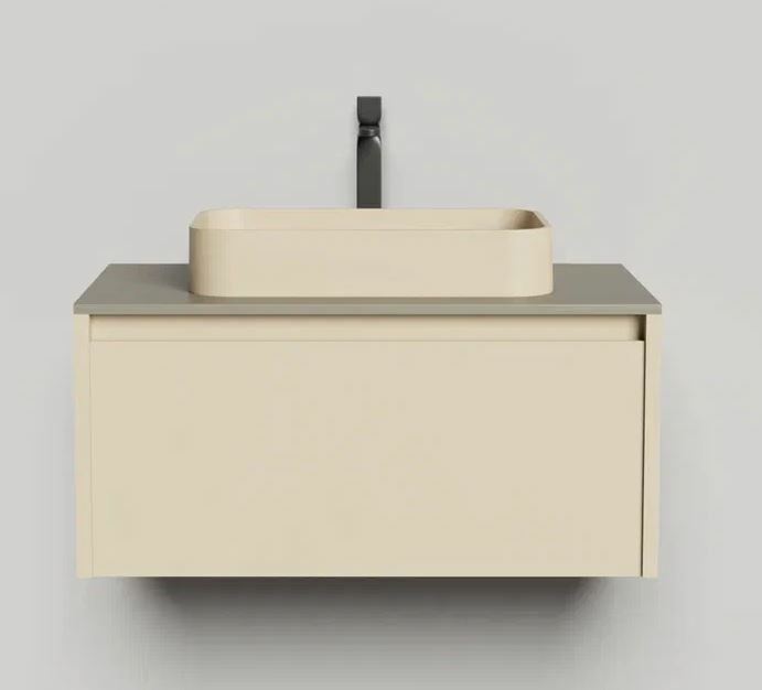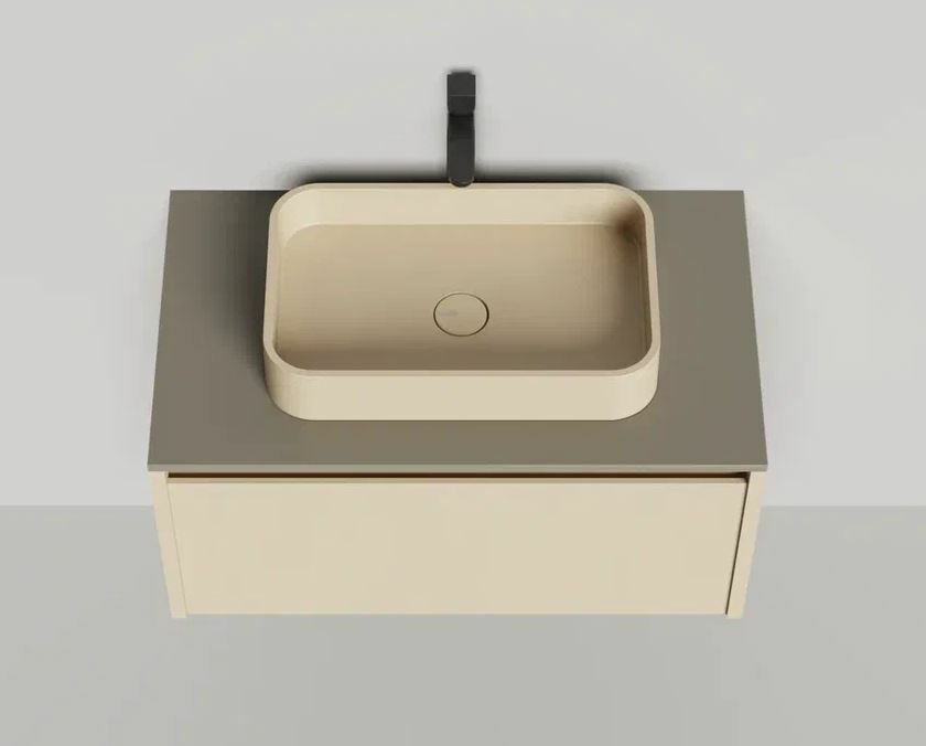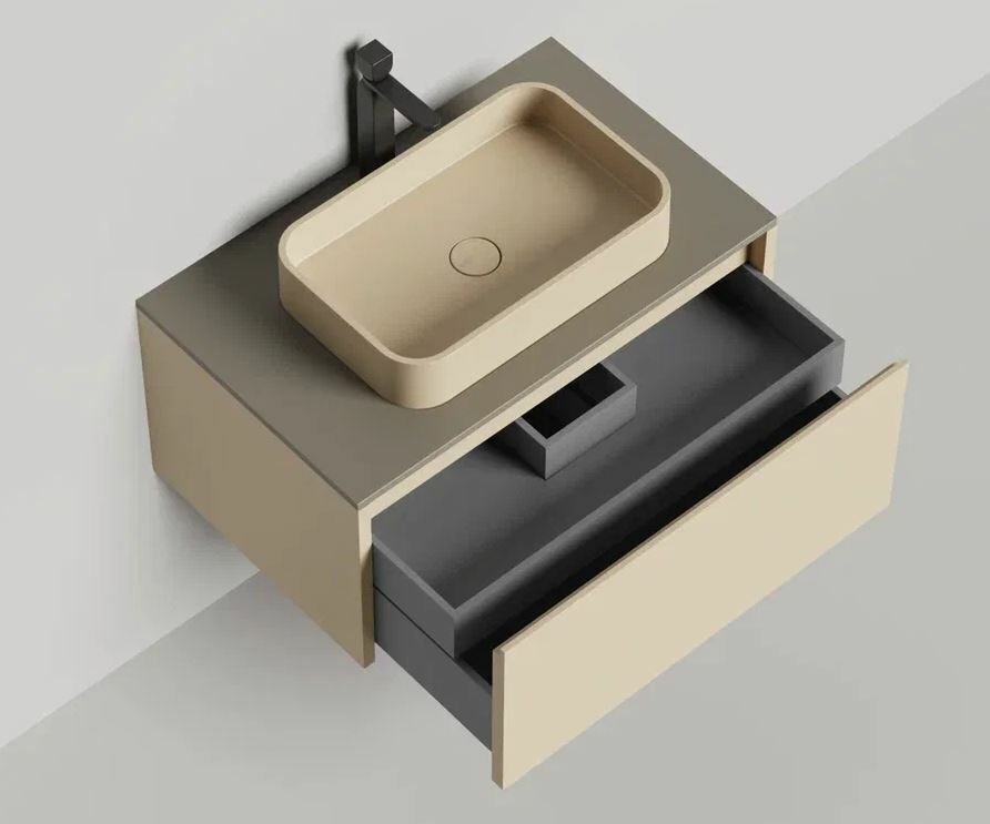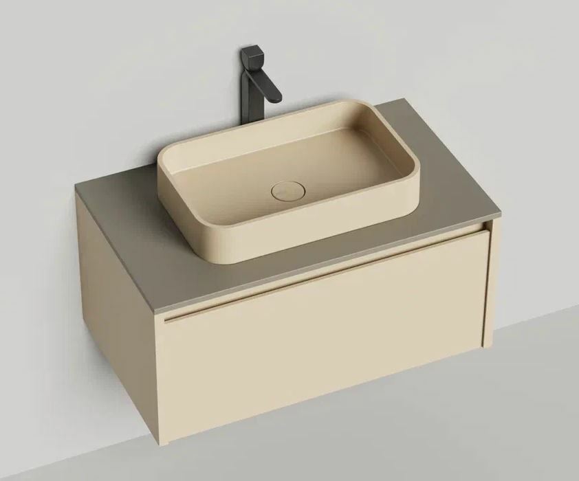 Тумба DOMINO, дополненная столешницей COSTA из каменного литья S-Stone, гарантирует практичность и простоту ухода.