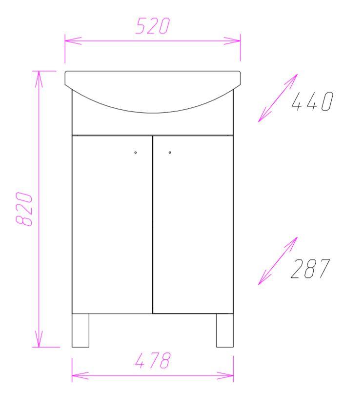 Размеры тумбы без учета раковины и ножек: 48х29х68 см.