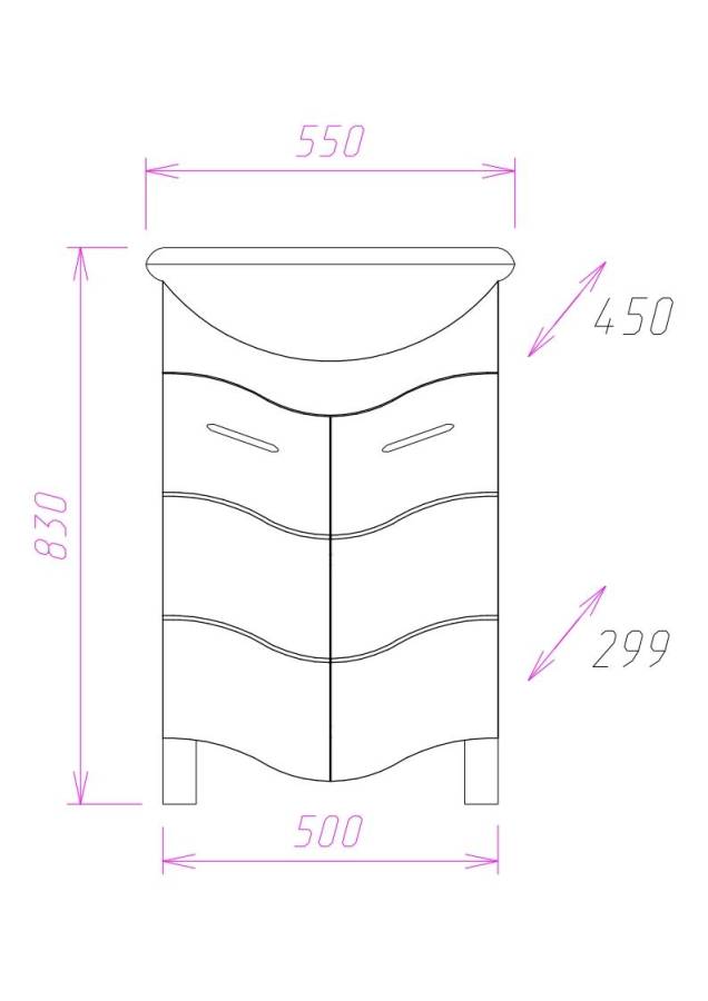 Размеры тумбы без учета раковины и ножек 50х30х75 см.