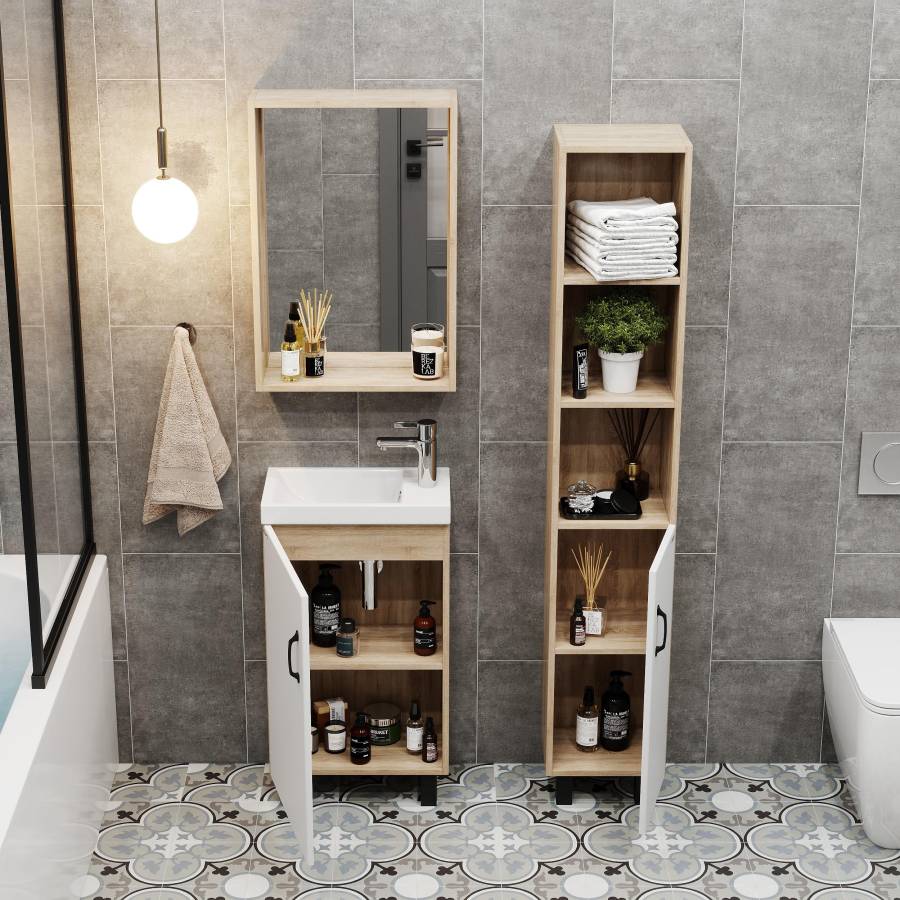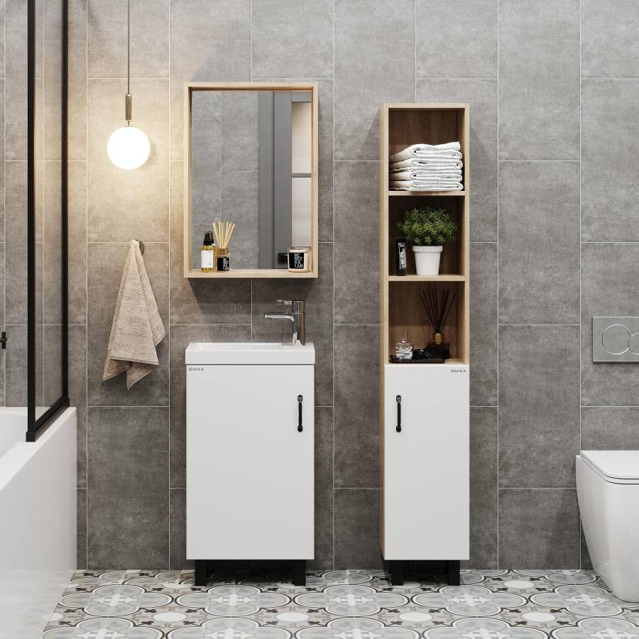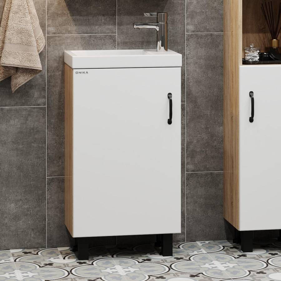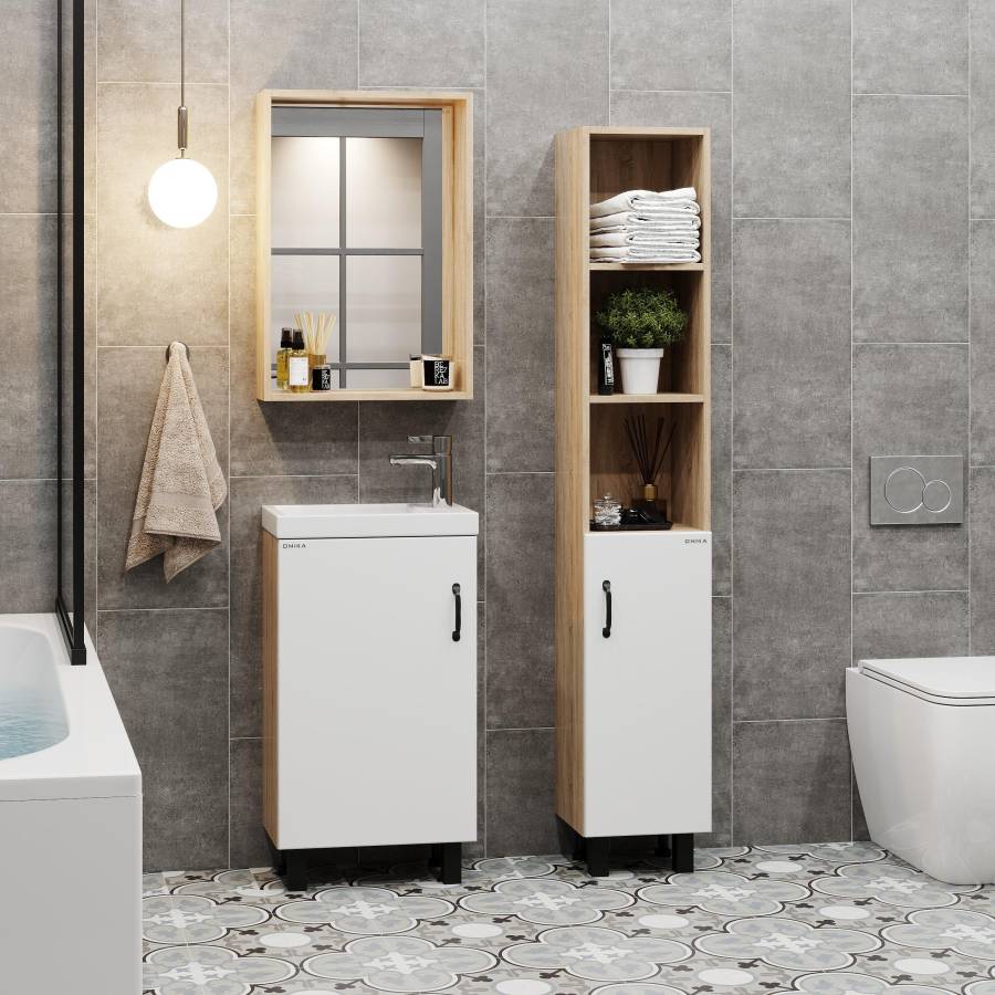 Размеры тумбы без учета раковины и ножек 45x26x68 cм.