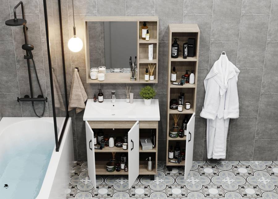 3 открытые полки обеспечивают быстрый доступ к часто используемым аксессуарам, место под зеркалом создано для косметических средств или декоративных элементов.