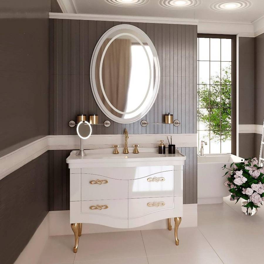 Обрамление зеркала выполнено из МДФ, покрытой эмалью, устойчивой к механическим воздействиям, перепадам температур и высокой влажности.