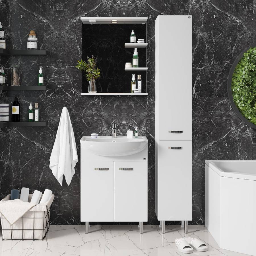 Основа для зеркала выполнена из ЛДСП, полка и козырек - из МДФ в пленке, устойчивых к механическим воздействиям, перепадам температур и высокой влажности