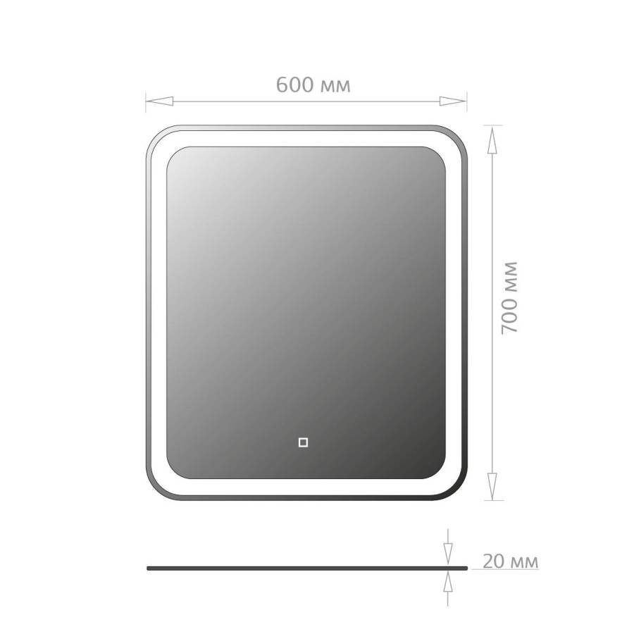 Яркость LED-подсветки регулируется при помощи встроенного диммера и сенсорной кнопки на поверхности зеркала.