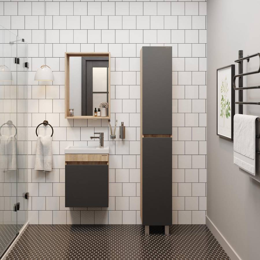 Корпус пенала выполнен из ЛДСП, фасад - из МДФ в пленке, специально предназначенных для использования в условиях высокой влажности.