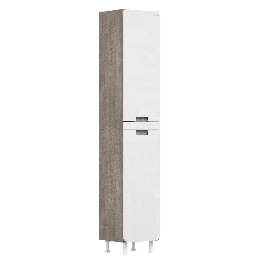 Ункальность пенала в его дизайне: корпус цвета бетона и фактурой мешковины отлично сочетается с белым глянцевым фасадом с закругленными углами.
