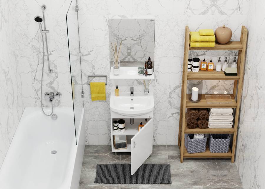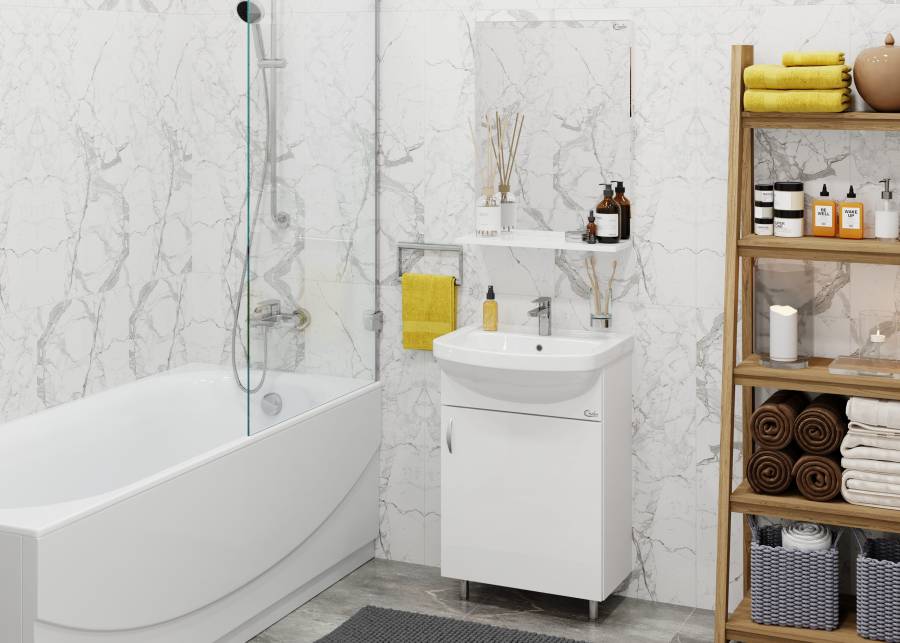 Компактные габариты позволяют грамотно организовать небольшой санузел, а простой белый глянец гармонично впишется в интерьер любой ванной комнаты.