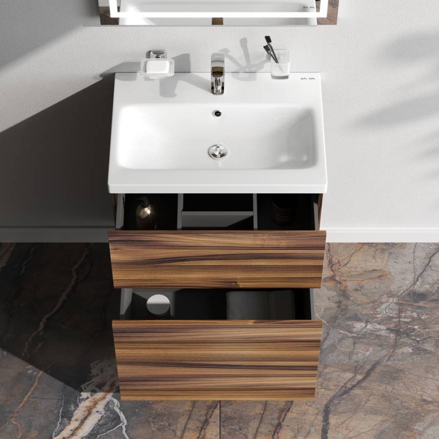 В верхнем ящике находится удобный органайзер для хранения гигиенических принадлежностей. Благодаря системе отделений органайзера каждый предмет имеет свое место что обеспечивает порядок и удобство при использовании. Такая система хранения позволяет экономить место и помогает поддерживать чистоту ванной комнаты_x000D_