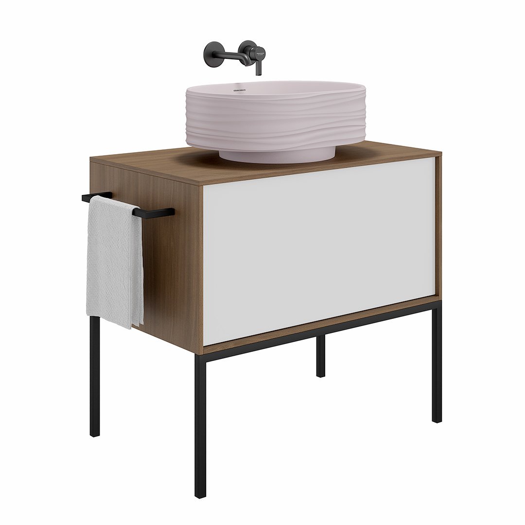 Белая матовая тумба с одним вместительным ящиком полного выдвижения и одним внутренним передвижным ящиком. Ящики закрываются плавно и бесшумно благодаря амортизирующей фурнитуре Hettich. Тумба может быть размещена двумя способами