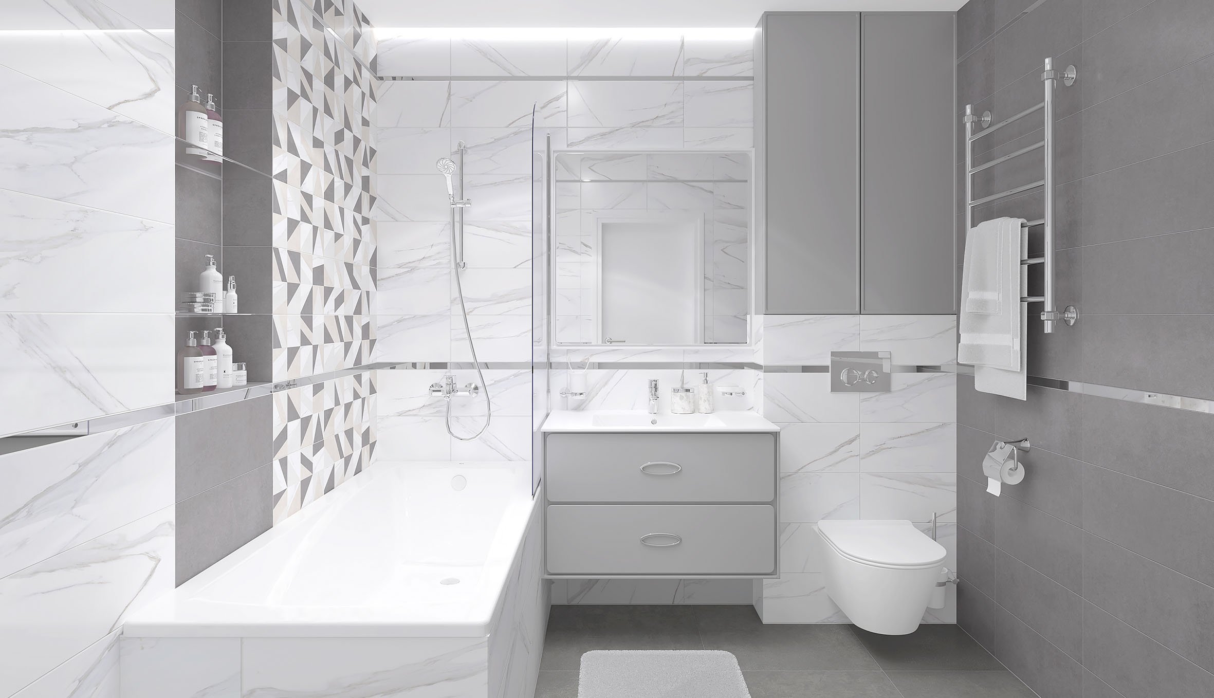 📝Просто оставить заявку в один клик. Все остальное мы сделаем за Вас! 🎨Мы нарисуем Дизайн-проект с 3D-визуализацией с раскладкой плитки и сантехникой |