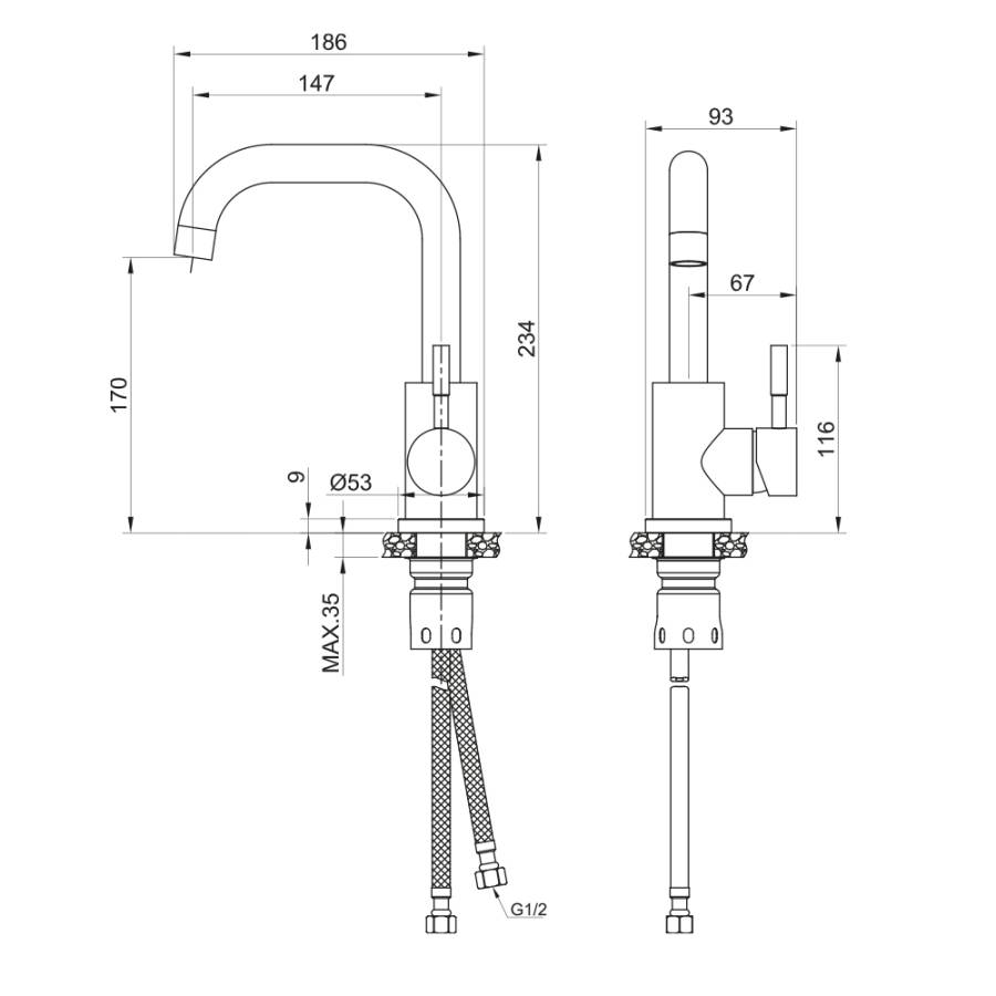 Высота излива см./мм.