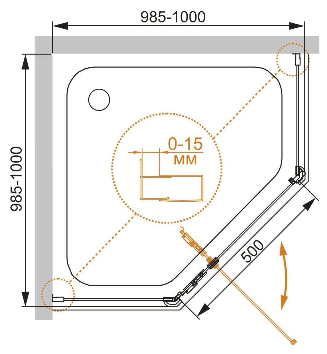 Напольный, на поддон, пристенный в угол |