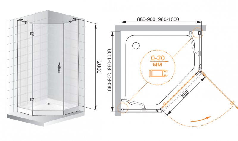 Напольный, на поддон, пристенный в угол |