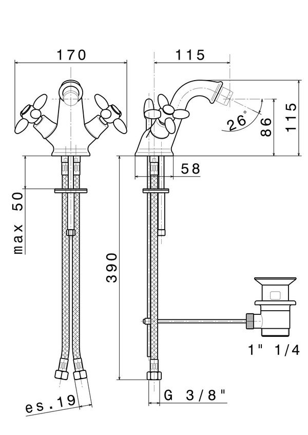 Аэратор, Гибкая подводка, Донный клапан, Крепления |