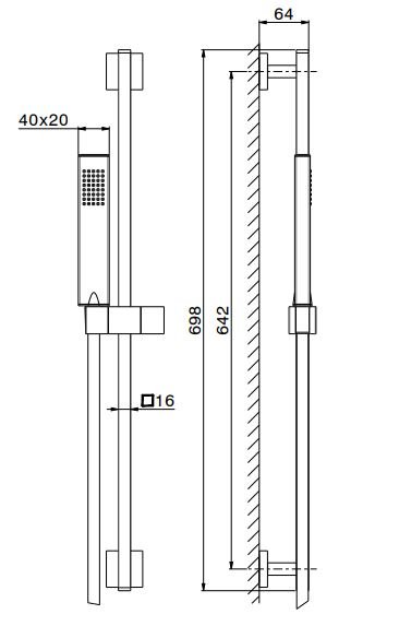 Держатель для душа, Душевая лейка, Душевая штанга, Душевой шланг, Комплект креплений |