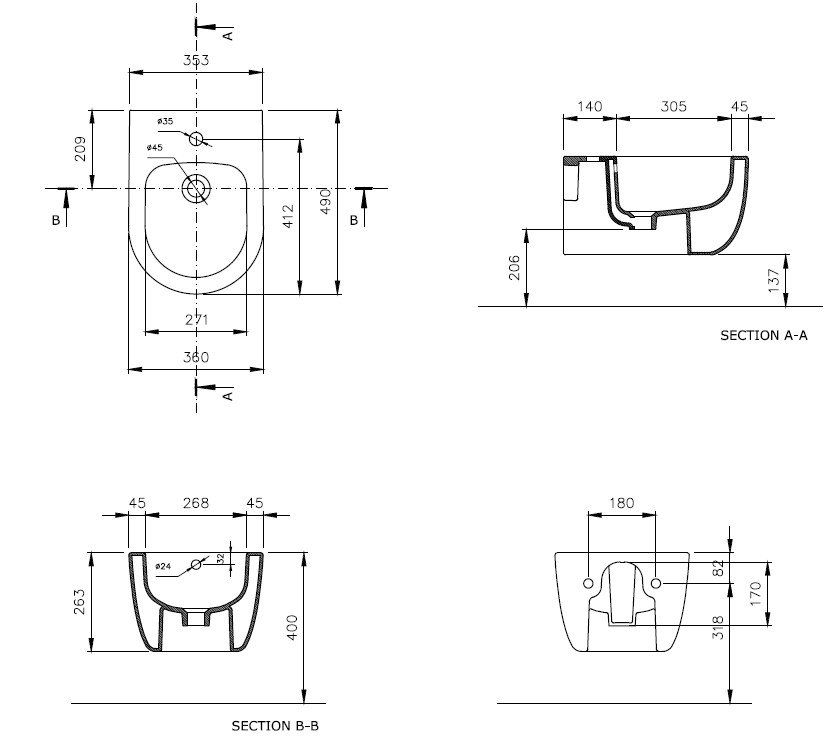 Горизонтальное (в стену) |