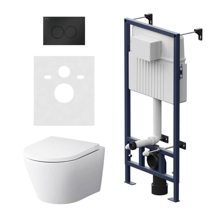 Вертикальные ребра жесткости в конструкции рамы обеспечивают дополнительную опору в месте Давления керамики На стену. Экономия пространства благоДаря узкому бачку 120 мм глубиной с качественной двухрежимной смывной арматурой. Заливной клапан с низким уровнем шума соответствует Классу II согласно европейского станДарта EN 14124. Укомплектован механической клавишей в цвете матовый Черный. В комплекте все необходимые патрубки и крепления а также прокладка между унитазом и стеной - звукоизоляция.