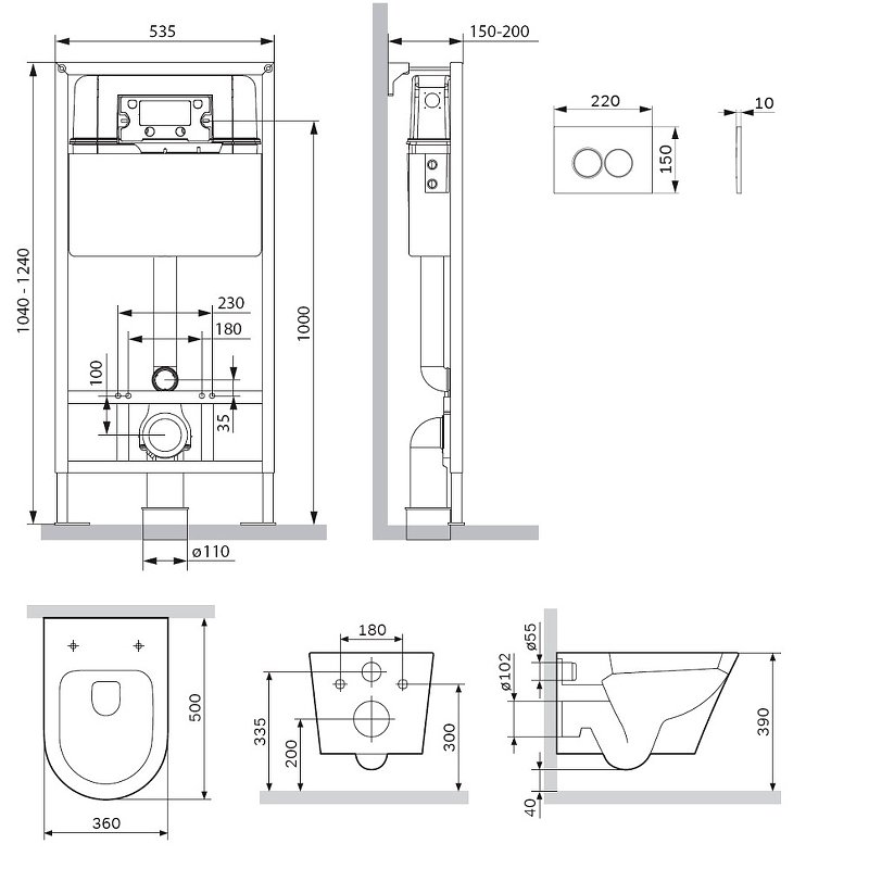 Звукоизолирующая прокладка, Инсталляция, Кнопка смыва, Комплект креплений, Смывной бачок, Сиденье |