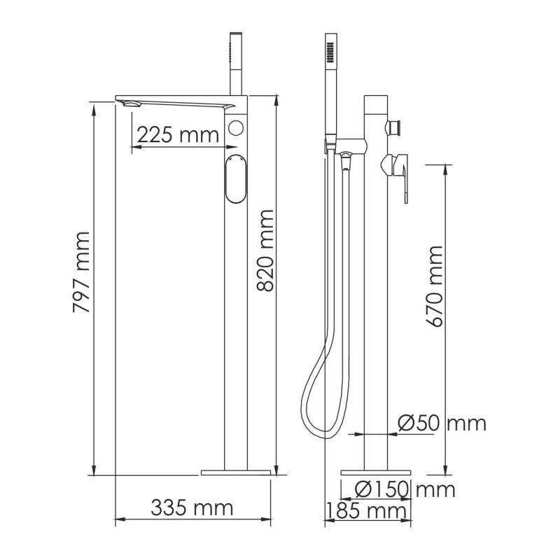 Лейка 1-функциональная с системой защиты от известковых отложений, Шланг ПВХ 1500 мм, подключение к лейке, Набор для монтажа, Круглый уровень (нивелир) Аэратор, Душевой гарнитур, Скрытая монтажная часть |
