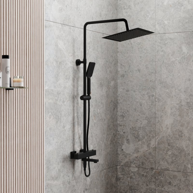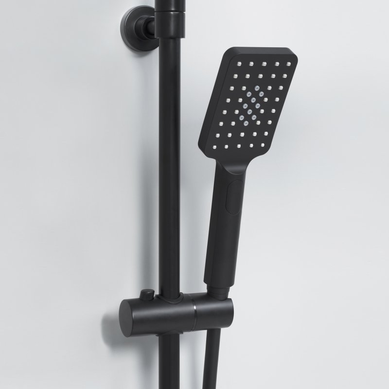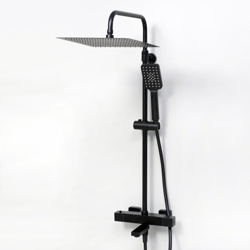Душевая насадка 300х300 мм, 144 форсунки, нержавеющая сталь, Стойка для душа, 22 мм регулируемая по высоте, Лейка 3-функциональная с системой защиты от известковых отложений, Шланг ПВХ 1500 мм, подключение к лейке, Термостатический смеситель, Термостатический картридж Vernet (Франция), Встроенный пластиковый аэратор Neoperl HONEYCOMB (Германия) с регулируемым углом наклона струи, Обратный клапан Neoperl (Германия), Керамический поворотный переключатель, Набор для монтажа |