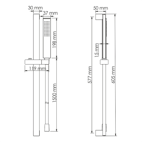 Лейка 1-функциональная с системой защиты от известковых отложений, Шланг ПВХ 1500 мм, подключение к лейке, Регулируемый держатель лейки, Набор для монтажа |
