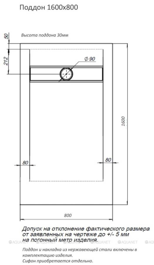 Поддон;Решетка слива из нержавеющей стали |