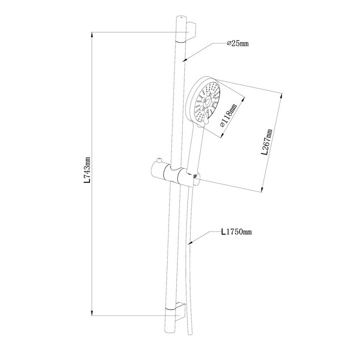 штанга для душа стальная, длина: 82,5 см;