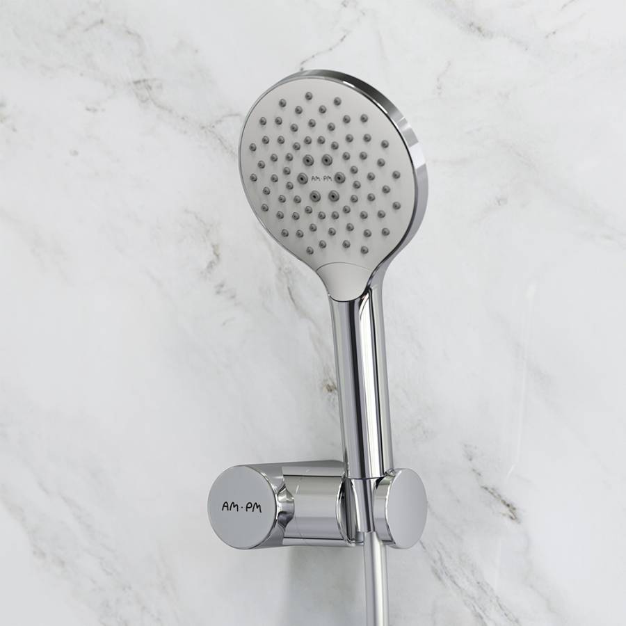 3 режима ручного душа: Spray EnerJet Spray + Massage с инновационным переключателем режимов Turning Switch функция Rub& Clean для легкой очистки душевых форсунок функция Аir In для повышения эффективности и экономии воды регулируемый держатель ручного душа шарнирное соединение защищает душевой шланг от перекручивания.
