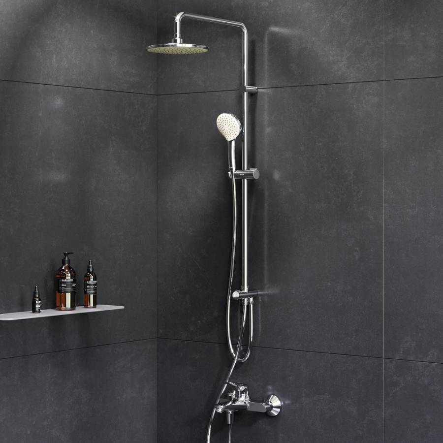 Душевая система оснащена функцией Air In которая увеличивает напор вдвое при этом сокращая расход воды на 30%. Результат – экономия средств забота об экологии а главное – непереДаваемое удовольствие от принятия душа. Диаметр душевых леек (верхний душ 220 мм и ручной душ 110 мм) позволит ощутить преимущества тропического душа Даже в станДартной ванной тогДа как увеличенная длина шланга 1750 мм обеспечит свободу движений во время принятия душа. Продуманные детали для удобства использования: телескопическая поворотная штанга регулируется по высоте в диапазоне от 1030 до 1460 мм обеспечивая комфорт для людей любого роста.