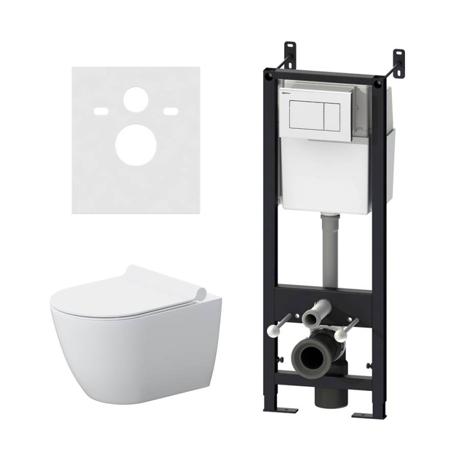 Звукоизолирующая прокладка, Инсталляция, Кнопка смыва, Комплект креплений, Смывной бачок, Сиденье |