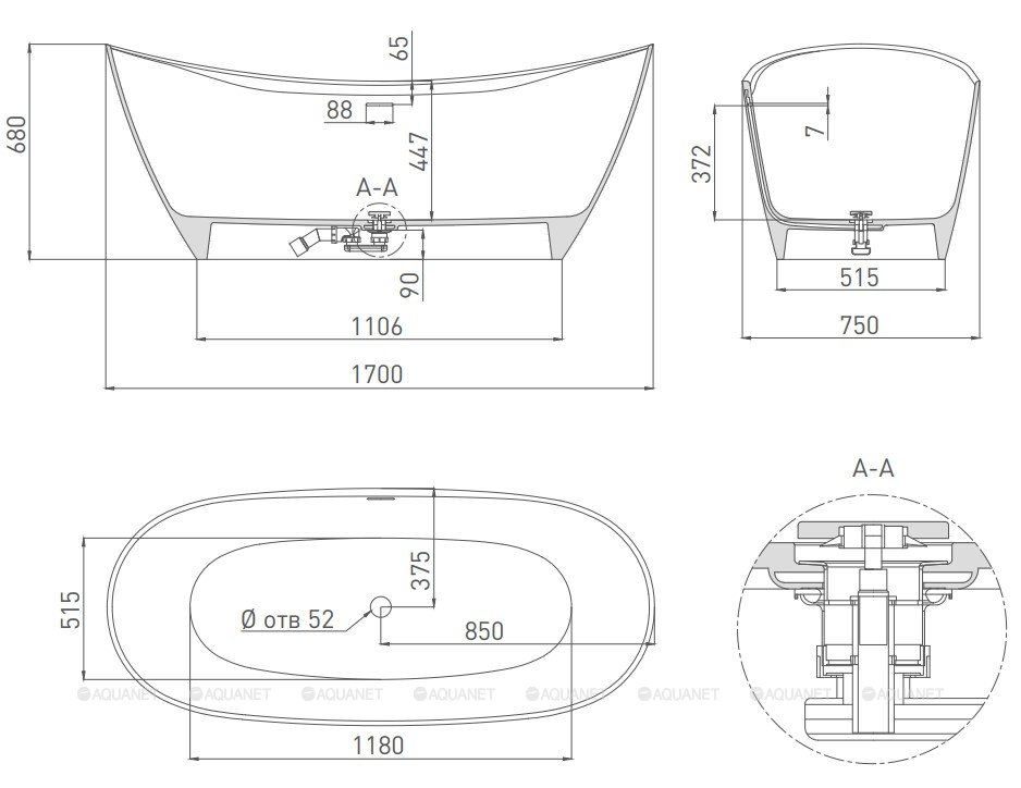 Слив-перелив интегрированный, донный клапан "Up&Down", цвет белый, RAL. |