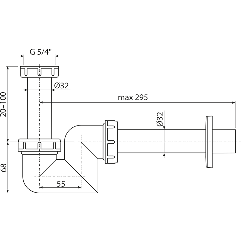 Корпус сифона, резьбовое соединение 5/4" для подключения слива раковины или биде |