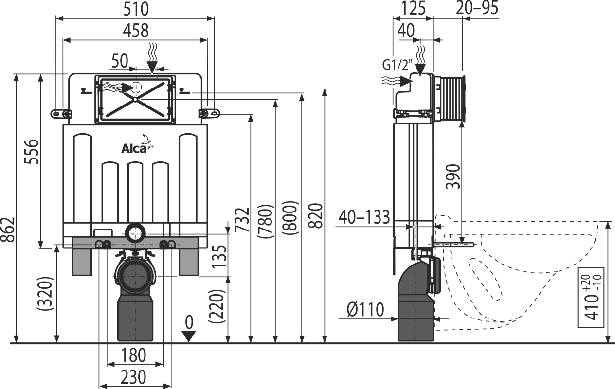 Монтажная высота 862 мм