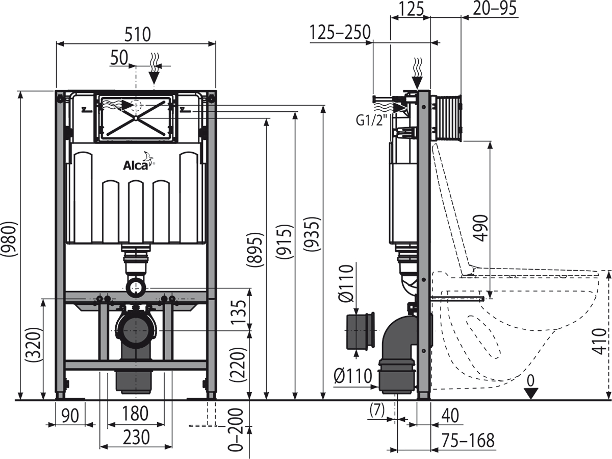 Подходит для установки пневматического или сенсорного смыва.
