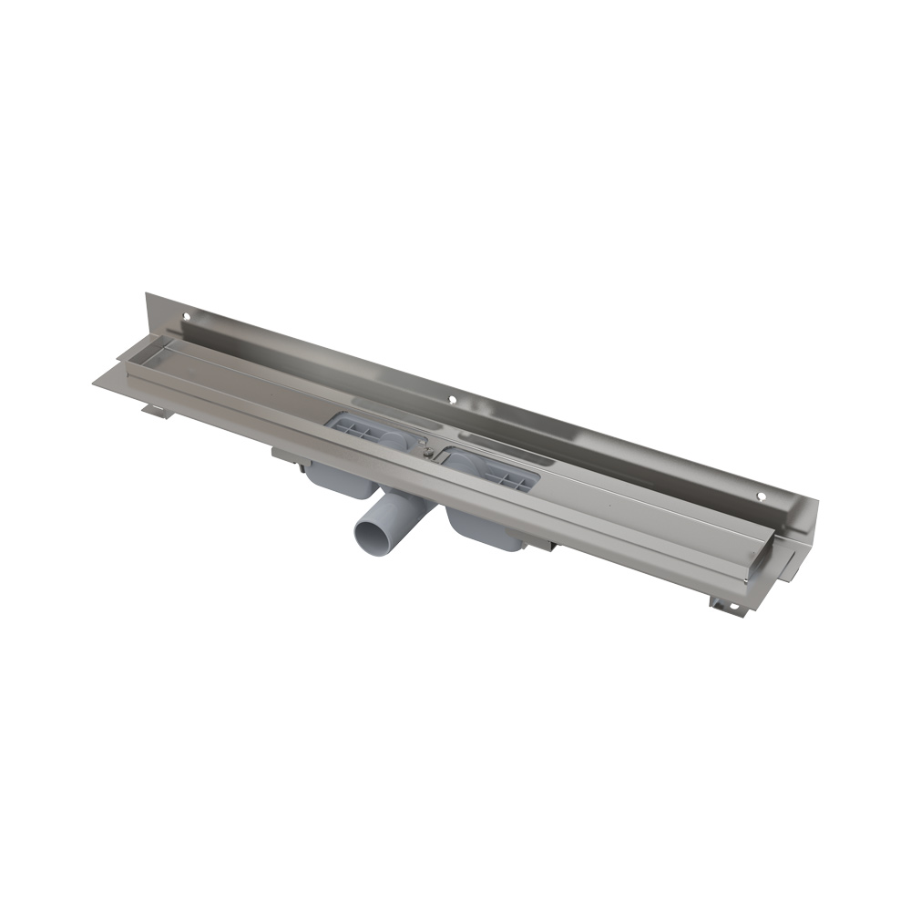 Водоотводящий желоб с сифоном Монтажный набор: шуруп Ø6×50 – 2 шт., дюбель Ø10 – 2 шт., шуруп Ø4,2×38 – 2 шт.,дюбель Ø8 – 3 шт. Самоклеящиеся гидроизоляционные ленты Защитная пленка для воротника желоба и впускного отверстия сифона Монтажный вкладыш для защиты лотка желоба Монтажный набор для крепления регулируемых ножек: шуруп M6×12 – 2 шт |