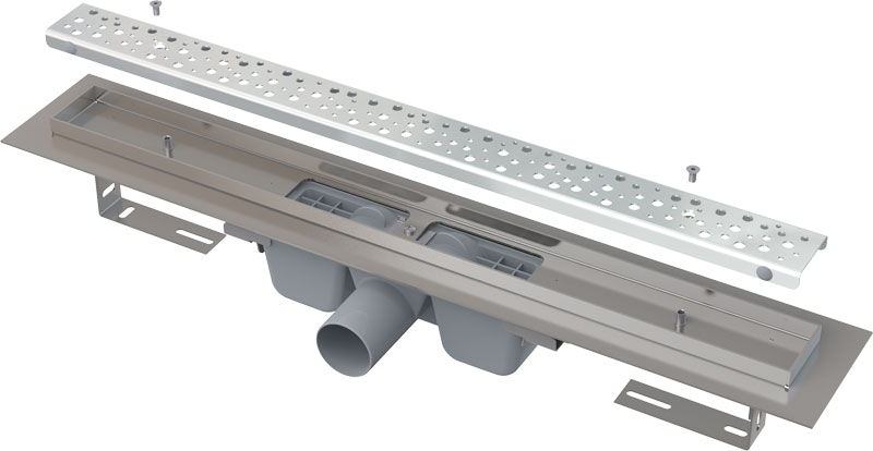 Водоотводящий желоб с сифоном - 1 шт. Перфорированная решетка BUBLE из нержавеющей стали - 1 шт. Самоклеящиеся гидроизоляционные ленты Монтажный набор для закрепления решетки - 1 шт. Монтажный набор для крепления регулируемых ножек - 1 шт. Монтажный вкладыш - 1 шт. Защитная пленка для воротника желоба - 1 шт. Инструкция - 1 шт. |
