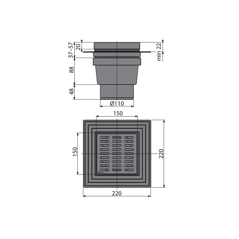 Корпус сливного трапа с боковым подключением к стоку Ø110 мм - 1 шт. Горловина сливного трапа 150×150 мм - 1 шт. Пластиковая решетка серая - 1 шт. Гидрозатвор – мокрый - 1 шт. Воротник 2-го уровня изоляции Ø150 мм - 1 шт. Комплект прокладок - 1 шт. Инструкция - 1 шт. |