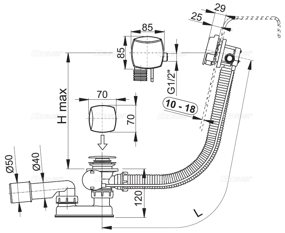 Корпус сифона с системой перелива; Поворотная стальная накладка, хромированная; Хромированная стальная пробка; Хромированная решетка слива из латуни; Гидрозатвор сифона из полипропилена, сваренный ультразвуковым методом, устойчив к термическим и химическим воздействиям; Монтажный комплект; Профильное уплотнение. |