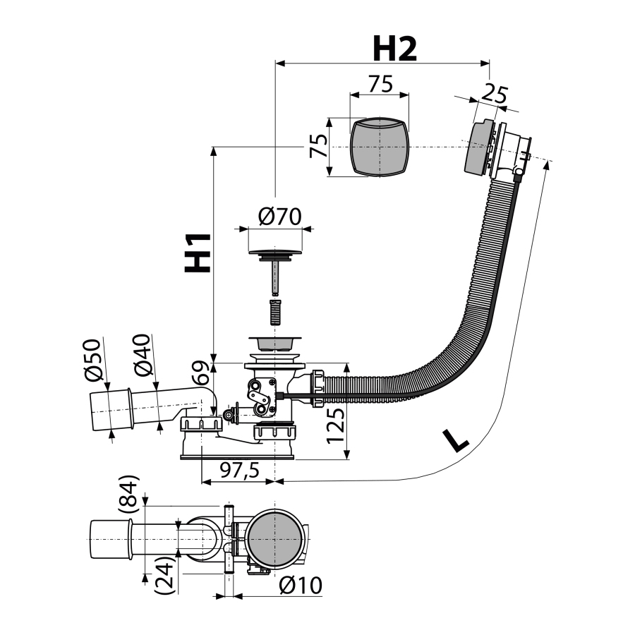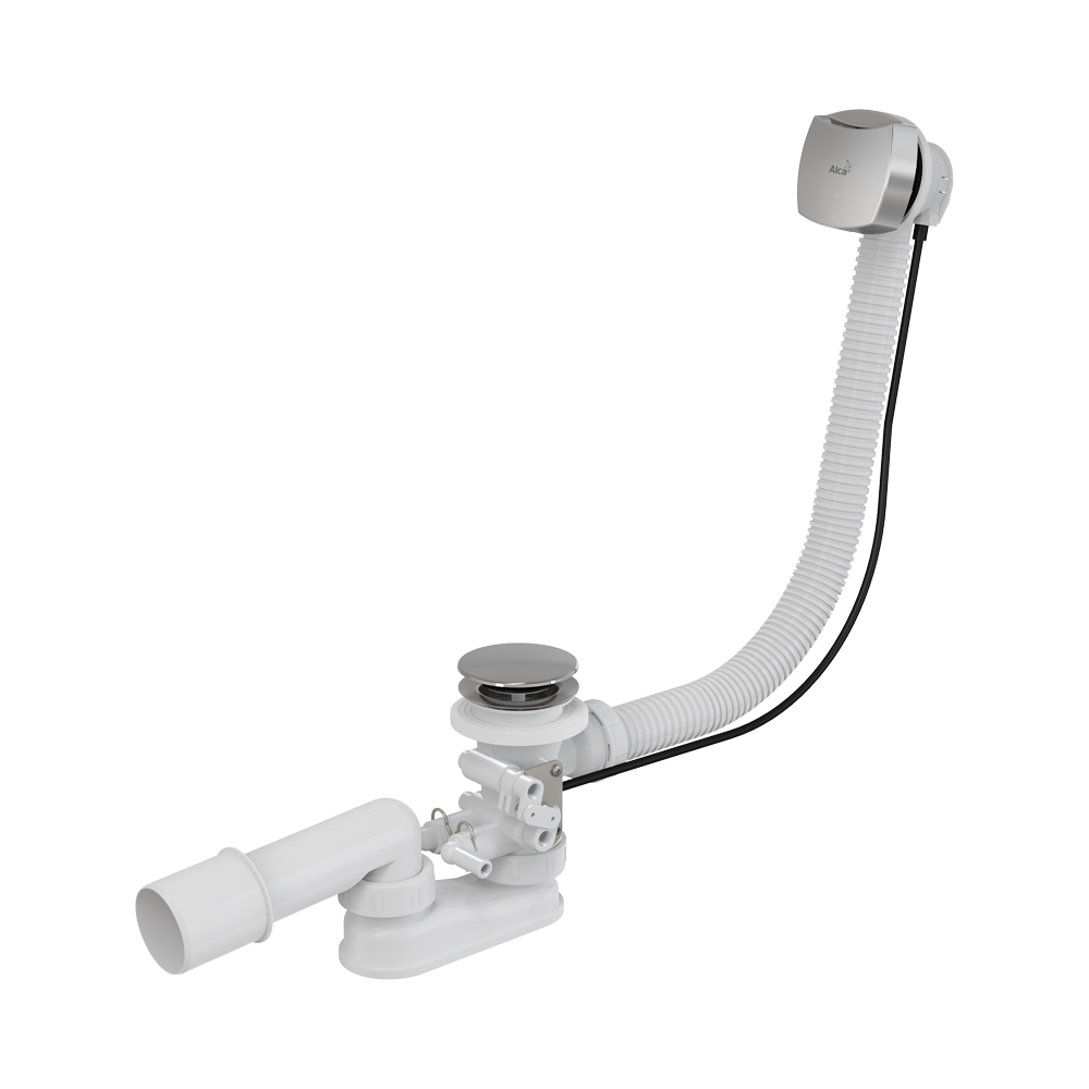 Составной частью сифона является механизм, который одновременно с открытием слива ванны открывает клапаны, что позволяет избыточной воде легко стечь из гидромассажной системы. |
