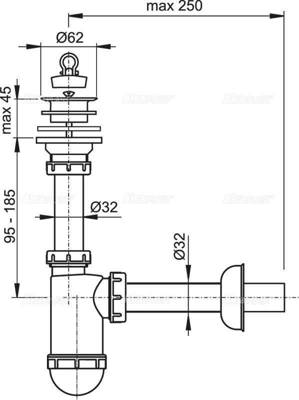 Корпус сифона; Пробка из ПВХ; Сливная решетка из нержавеющей стали; Обрамление пластиковое. |