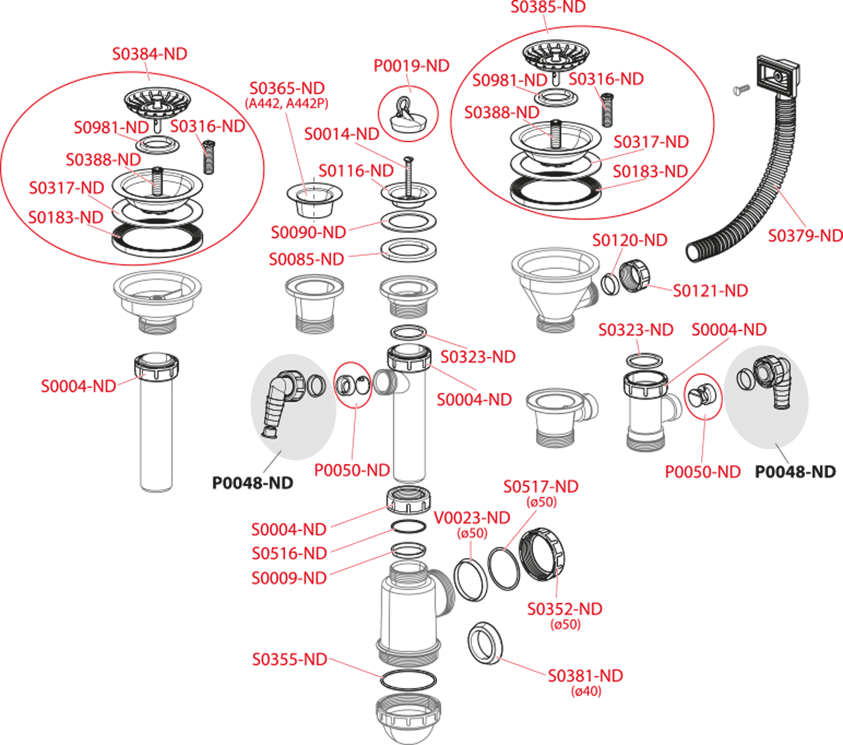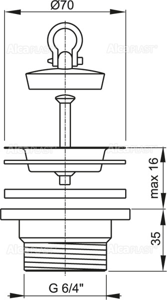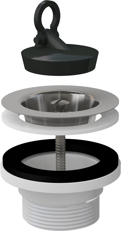 Корпус слива. Пробка из ПВХ. Сливная решетка из нержавеющей стали. |