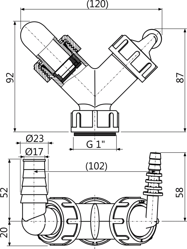 Корпус колена; Колено 17-23 мм 1шт., колено 8-16 мм 1 шт.; Прокладка; Пробка 1 шт.; Уплотнение-переходник 2 шт.; Обратный клапан 2 шт. |