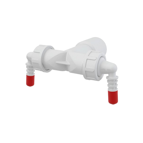 Два штуцера для подключения электрооборудования – стиральные машины, посудомоечные машины, сушилки, и т. д. Заслонки с перегородкой служит для направления потока воды в водосток. |