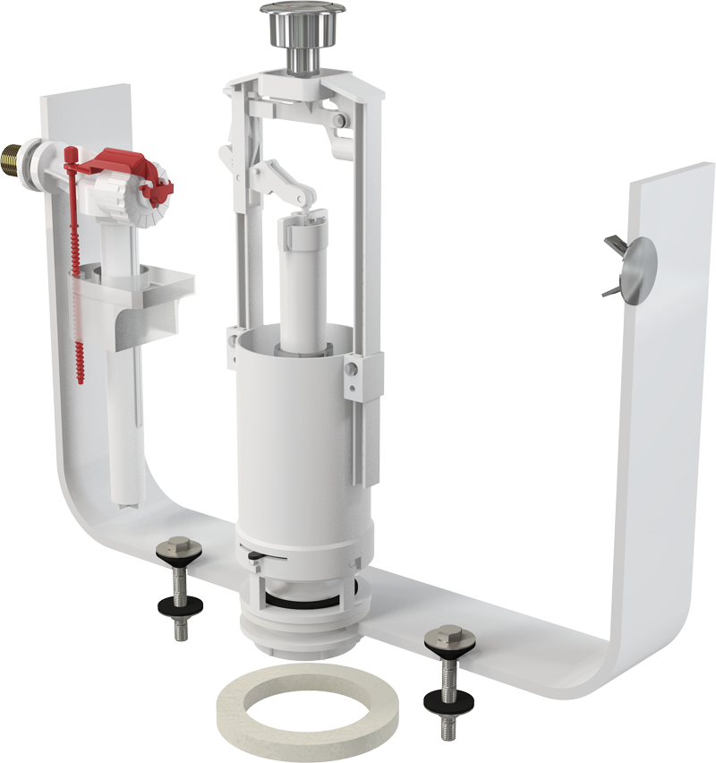 Конструкция позволяет регулировать высоту механизма в зависимости от высоты бачка.