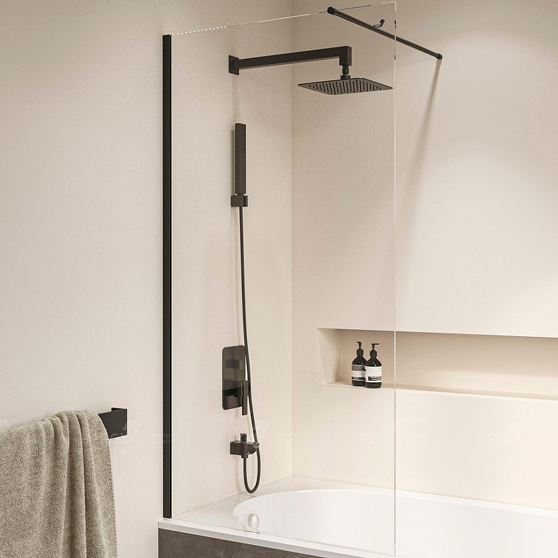 Цвет профиля шторки черный, что придает ей особенную изящность и элегантность. Этот цвет всегда в моде и отлично сочетается с любым цветовым решением ванной комнаты.